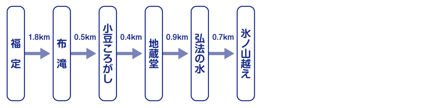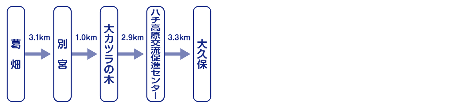 - 波賀町・若桜町(鳥取県)・小代区・村岡区に通じるコースの他、氷ノ山越えから地蔵堂、布滝を経て福定へ行くコースも。